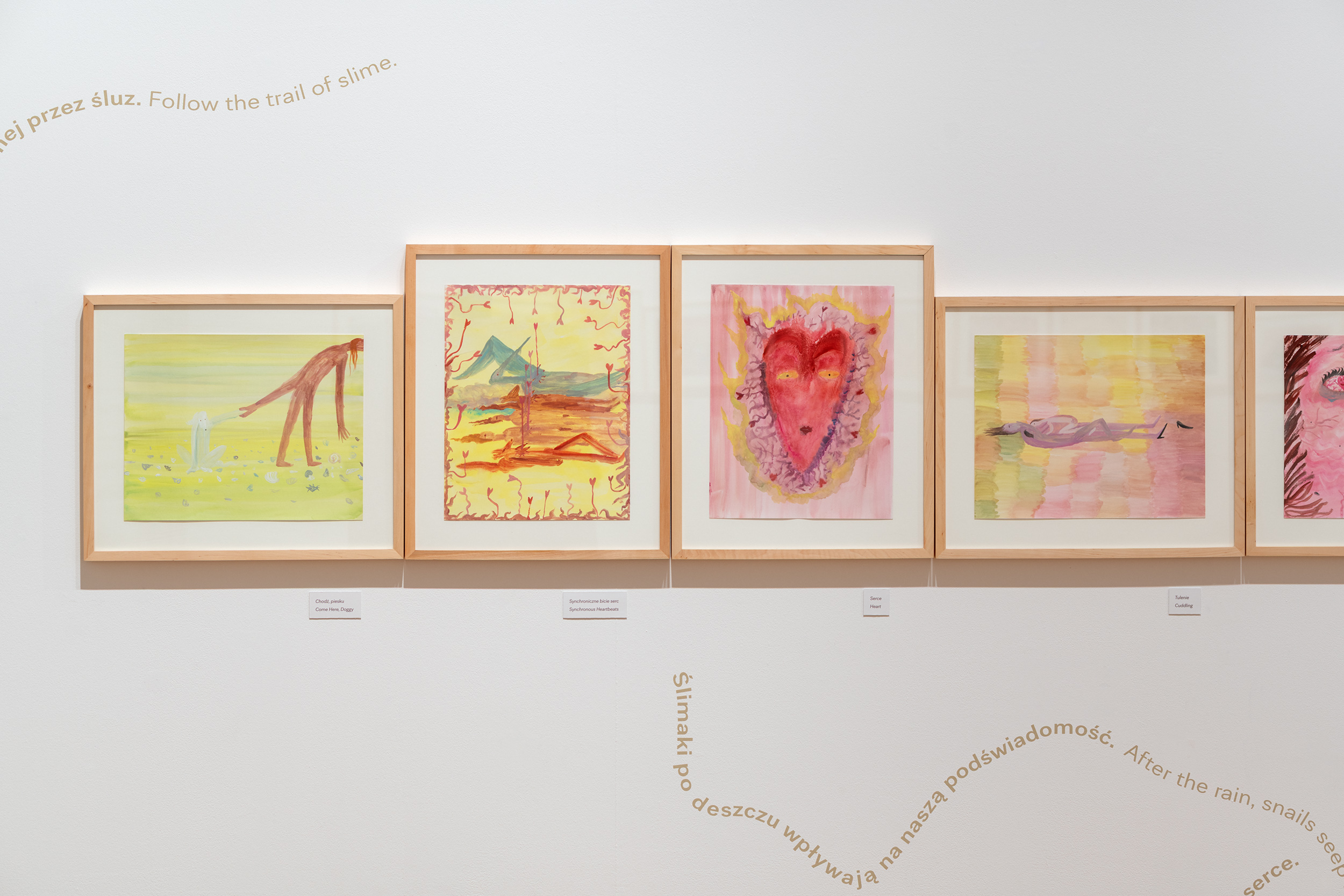 Exhibition, Joanna Fluder. Slime, Zachęta – National Gallery of Art., 25.07- 19.10.2025, from the left: Joanna Fluder: Come Here, Doggy, Synchronous Heartbeats, Heart, Cuddling, What is in the Heart, the Eyes will Show, photo by Maciej Landsberg/Zachęta a